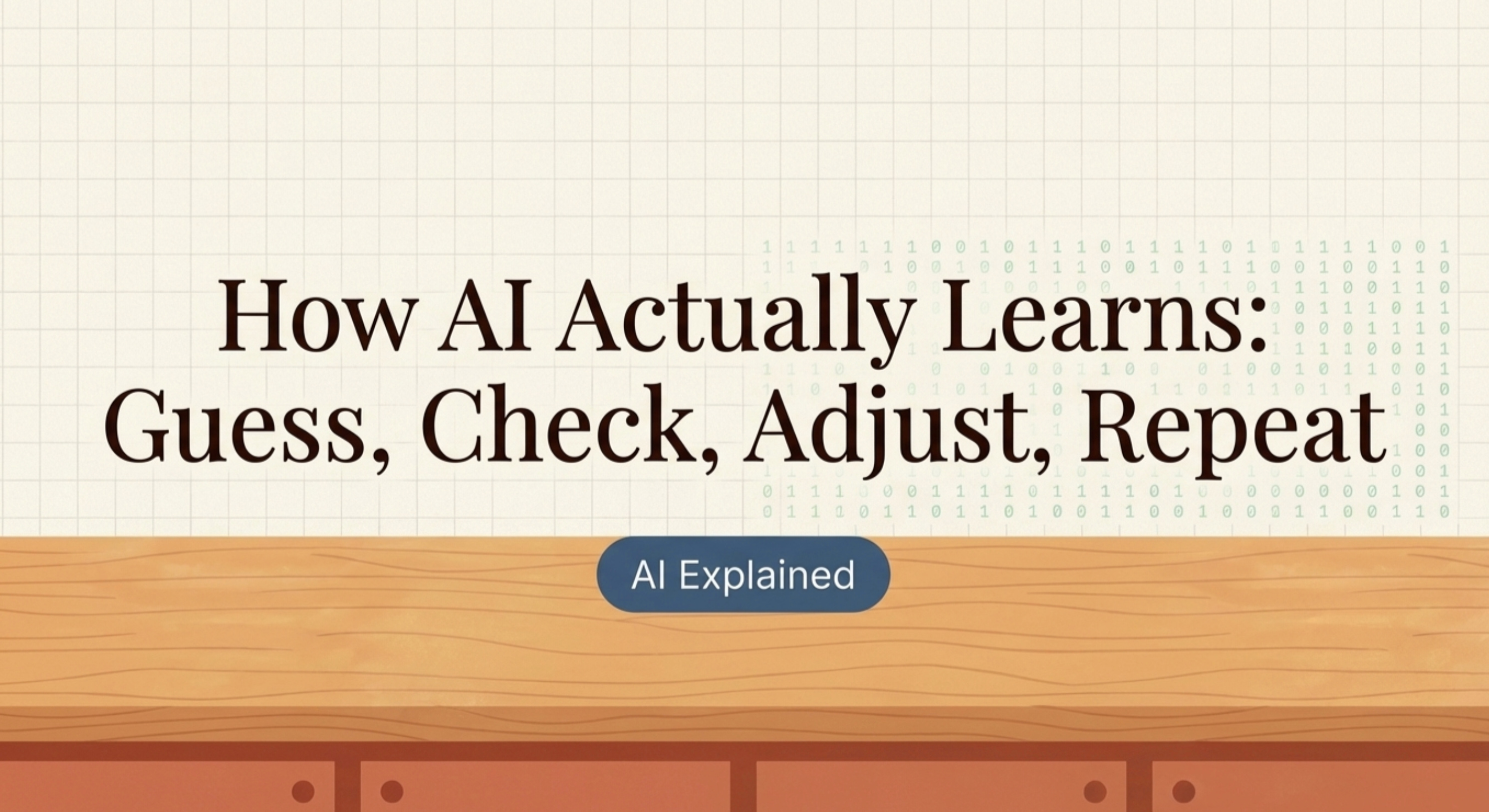 How AI learns is not magic, not science fiction, and not a mystery reserved for PhD researchers. It’s a loop: predict, measure how wrong you were, adjust, and try again. The same way you learned to cook.